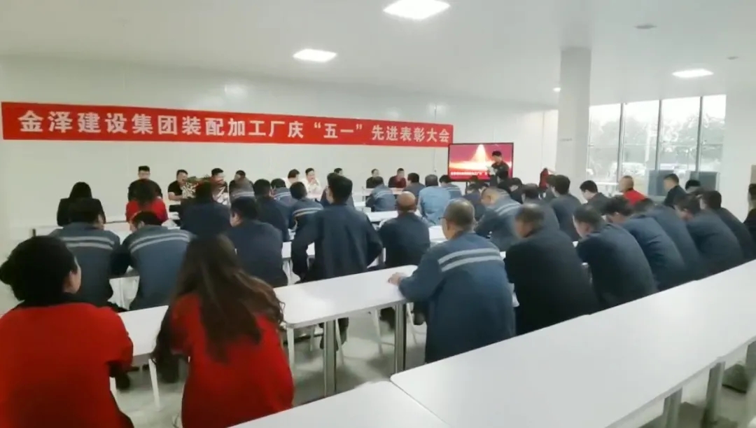 在“五一”国际劳动节来临之际,4月29日下午,金泽建设集团装配加工厂召开了表彰大会,表彰了先进班组和先进个人,二位先进代表进行了发言。会议由总经理陈 明主持,金泽建设集团董事长 王磊 、雄峰集团董事长 金泽建设集团富平分公司董事 杨立智、产业园负责人缑发余主任、金泽建设集团经营部总经理 高望、公司其他领导、先进员工代表等参会。