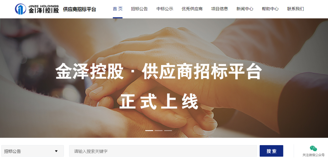 金泽控股集团—供应商招标平台正式上线!